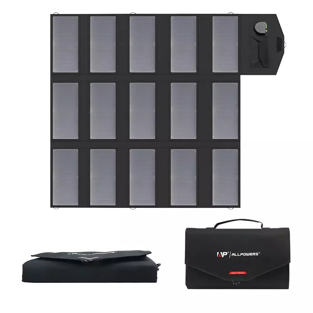 Потужний портативний зарядний пристрій ALLPOWERS AP-SP-012-BLA має виходи 2*USB 5В + DC 18В. Можливість об'єднання 4-х панелей в одну сумарною потужністю 400 Вт.