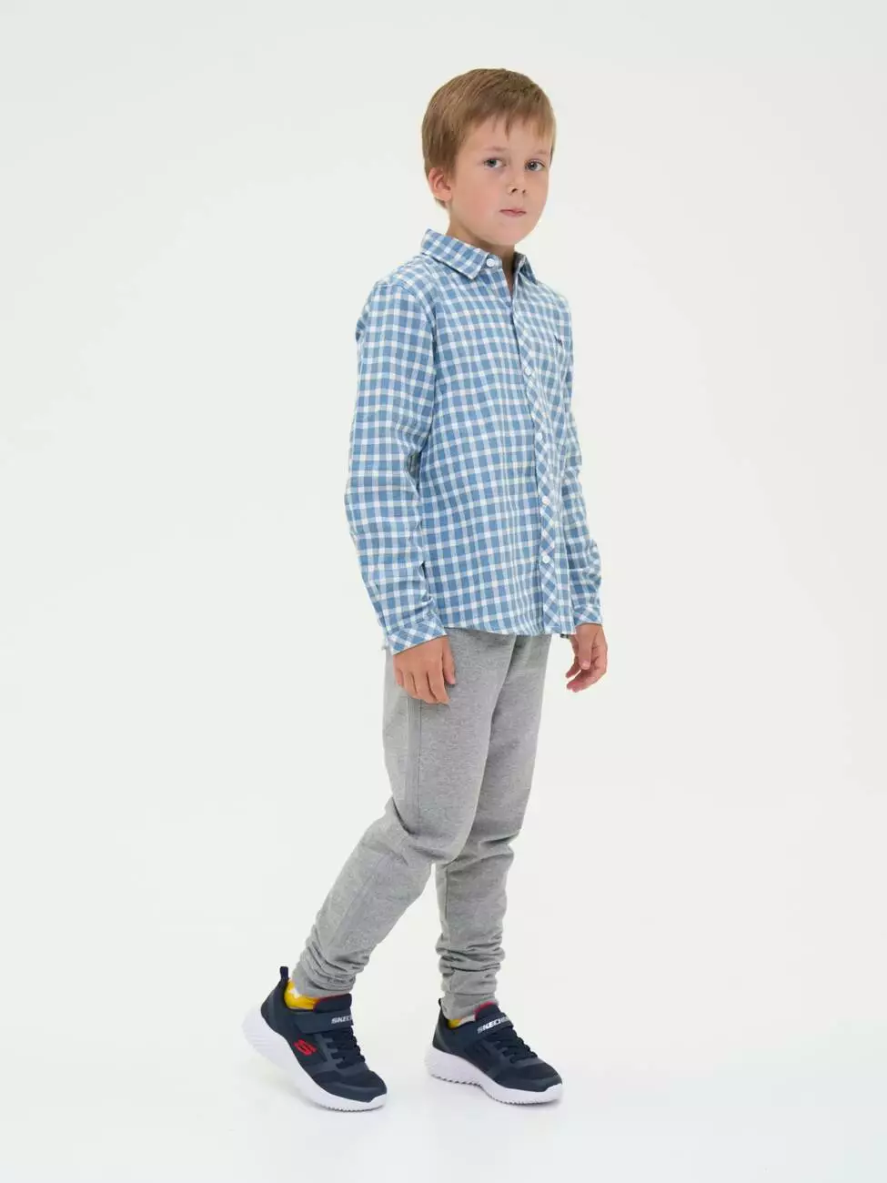 Зустрічайте нову колекцію - колаборація брендів YUMSTER і NEWNESS! Легко поєднується комфорт та модний дизайн! Ця модель сорочки підходить як для повсякденних, так і для особливих випадків. Деталі моделі: сорочка у дрібну клітку. Основний колір бірюзовий. Довгий рукав. Відкладний комір. Прямий крій. Спереду застібається на гудзики. На грудях маленька вишивка. Розмірний ряд: на зріст від 98 см до 140 см