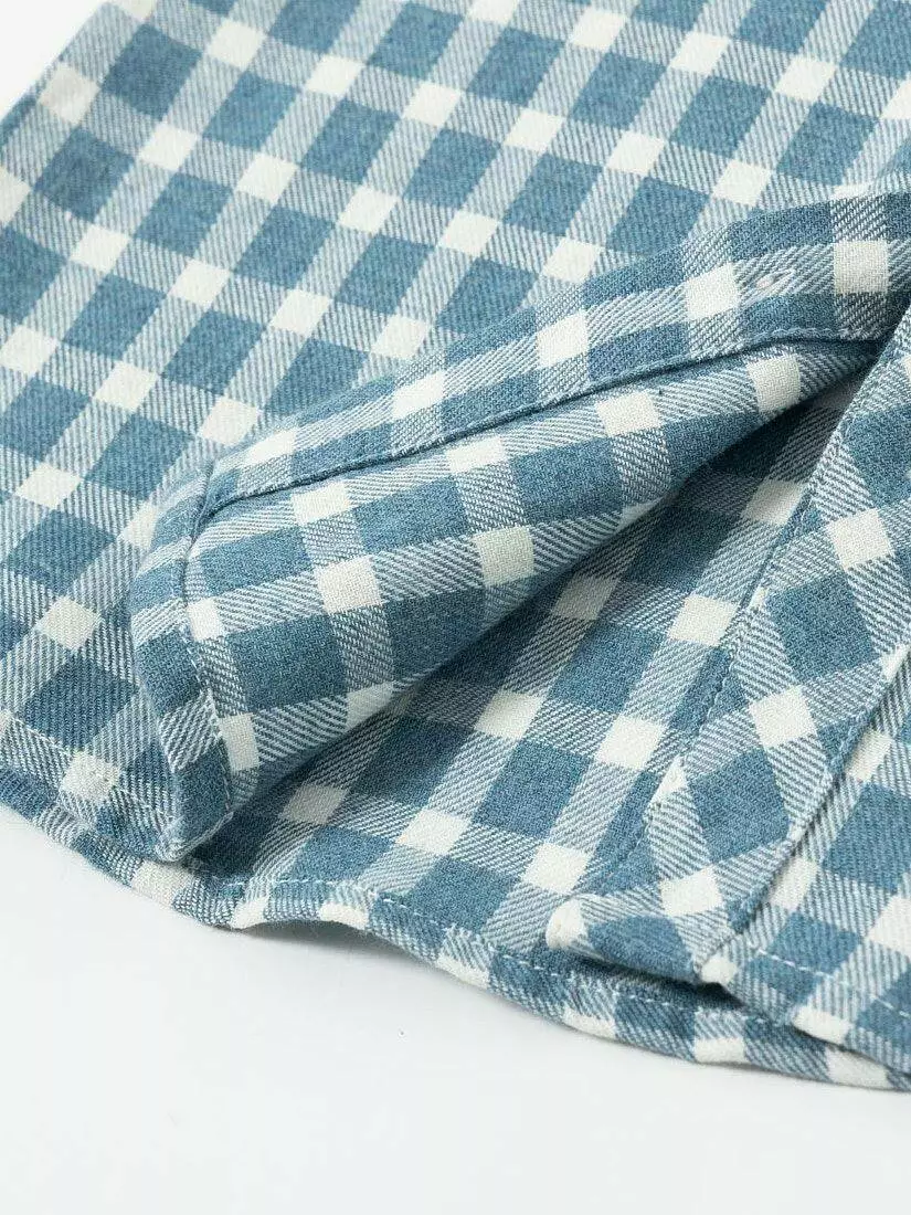 дрібну клітку. Основний колір бірюзовий. Довгий рукав. Відкладний