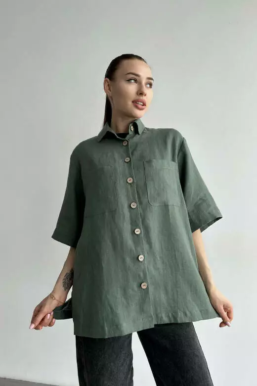 Чарівність та елегантність поєднуються у цій лляній жіночій сорочці