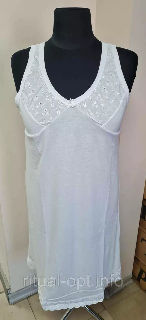 Сорочка жіноча біла з кружевом,довга.Матеріал трикотаж.Хороша якість.