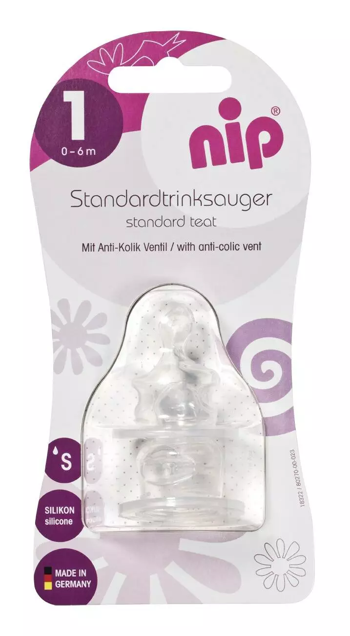 <p><em>Соска силіконова антіколіковая Nip має антіколіковую вентиляційний клапан, який забезпечить вашій дитині здорове і правильне харчування. З такою системою повітря не потрапляє в животик дитини, а йде прямо в пляшку, заміщаючи випиту рідину.</em></p><p><strong><br>Основні переваги:</strong></p><p><br></p><ul><li><em>підходить для всіх стандартних пляшечок</em></li><li><em>запобігає виникненню кольок і здуття животика малюка</em></li><li><em>забезпечує оптимальний потік для повільних рідин, таких як чай, вода або грудне молоко</em></li><li><em>виконана з міцного і безпечного силікону, стійкого до розтягування і укусів</em></li><li><em>легко очищається в стерилізаторі, а також методом кип'ятіння або холодним способом</em></li><li><em>має еластичний рукав для оптимального захоплення на шийці пляшки</em></li><li><em>не містить Бісфенол А</em></li><li><em>скошена форма соски є ортодонтичної і анатомічно правильною, що формує правильний прикус і зростання рівних і красивих зубів</em></li></ul><p><strong><br>Характеристики:</strong></p><p><br></p><ul><li><em>потік: повільний</em></li><li><em>матеріал: силікон</em></li><li><em>кількість: 2 шт.</em></li><li><em>рекомендовано для дітей від 0 до 6 місяців.</em></li></ul>
