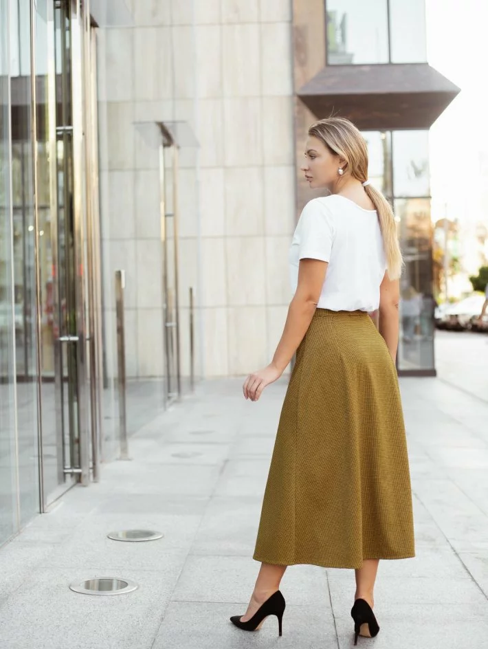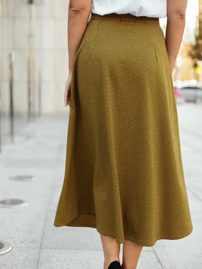 Модна цього сезону Спідниця - трапеція з гарними гудзиками спереду,