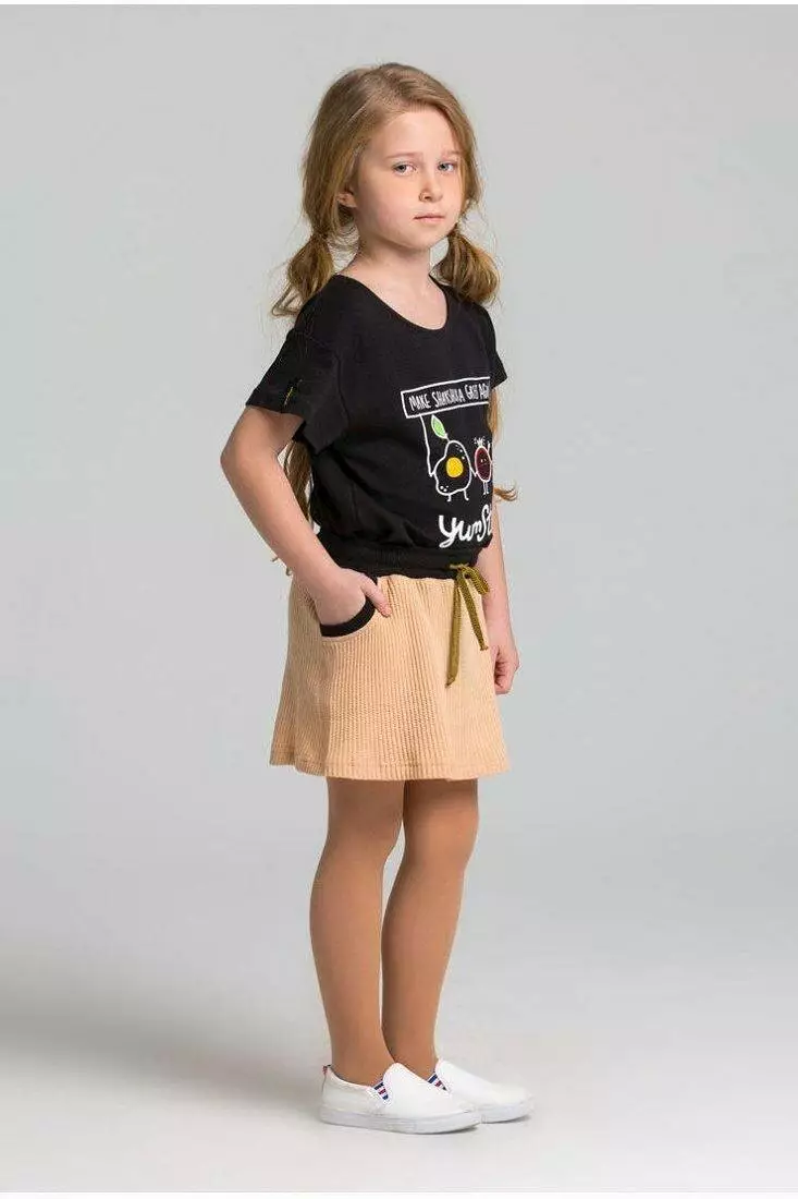 Спортивна дитяча спідниця вище колін персикового кольору. Для дівчаток від 5 до 15 років.