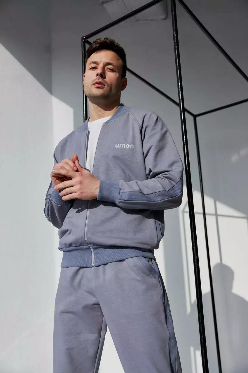 Чоловічий спортивний костюм з кофтою на замку зі стійкою та