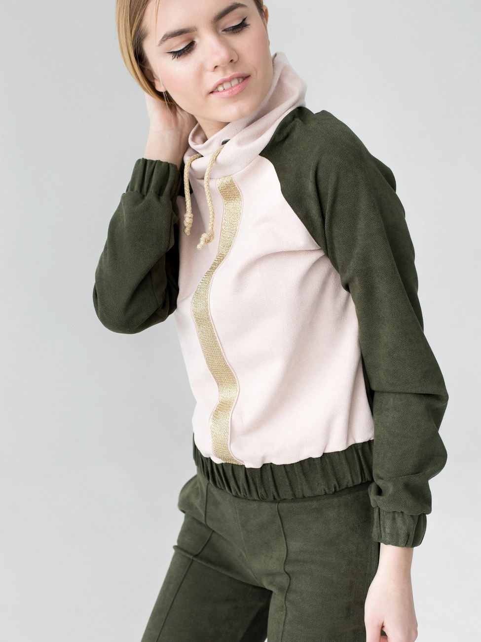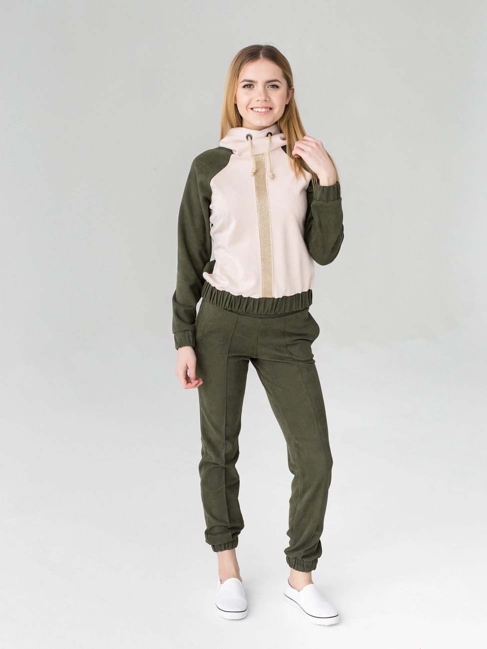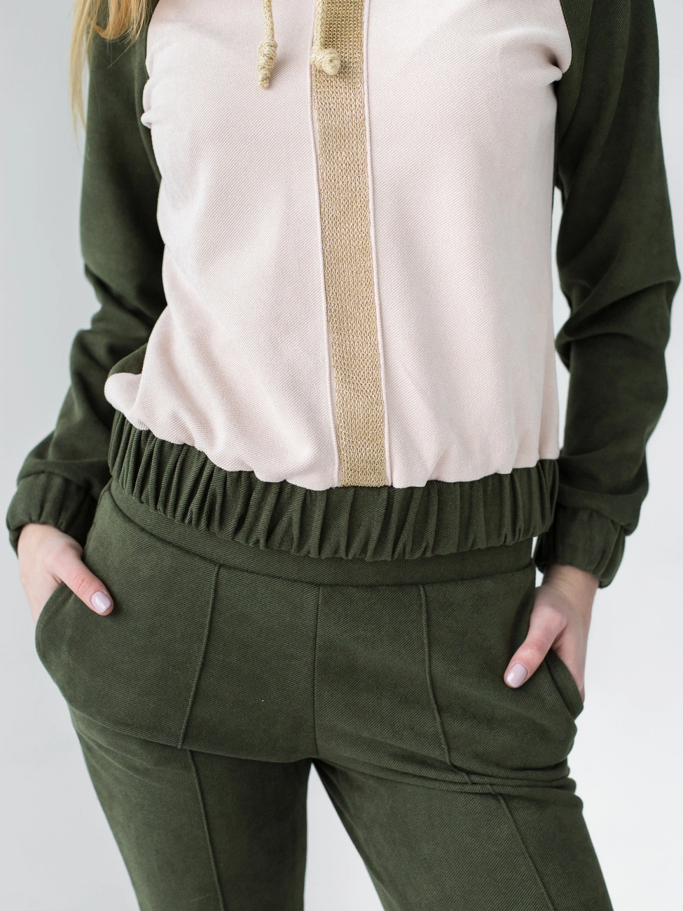 Женский костюм Джейн выполнен из ткани твид высокого качества. Костюм состоит из кофты и брюк. Кофта с длинным рукавом, горловина хомут на завязках. Брюки пояс на резинке, к низу на манжетах, по бокам карманы. Костюм практичен и удобен. Подойдет на все случаи жизни.