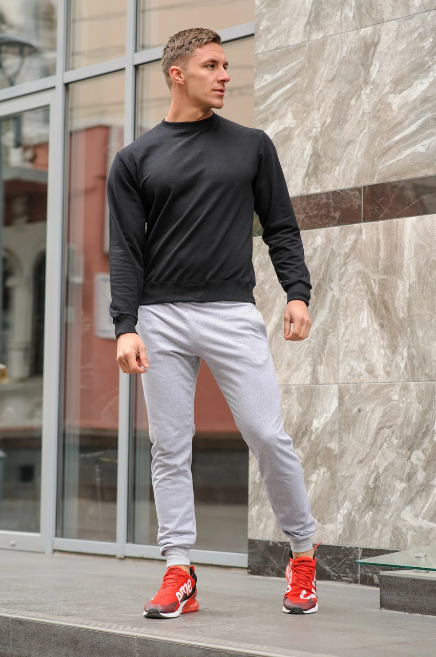 Спортивный костюм мужской весна-лето-осень (черный свитшот + серые штаны)