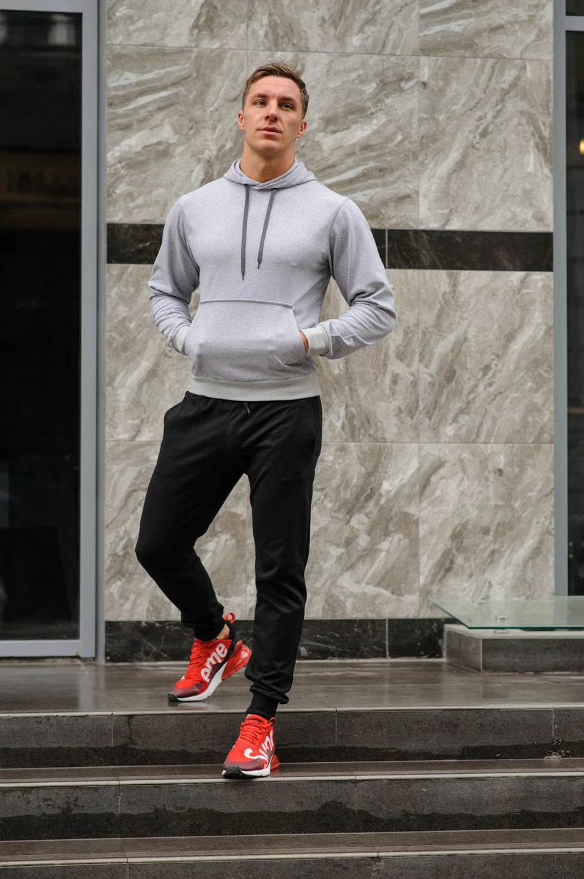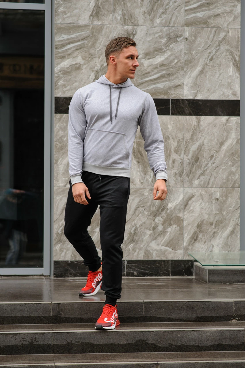 Спортивный костюм мужской весна-лето-осень (серая худи + черные штаны)