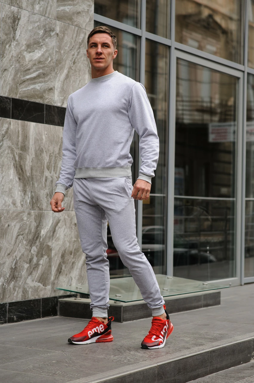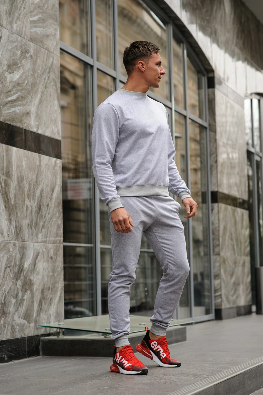 Спортивный костюм мужской весна-лето-осень (серый свитшот + серые штаны)