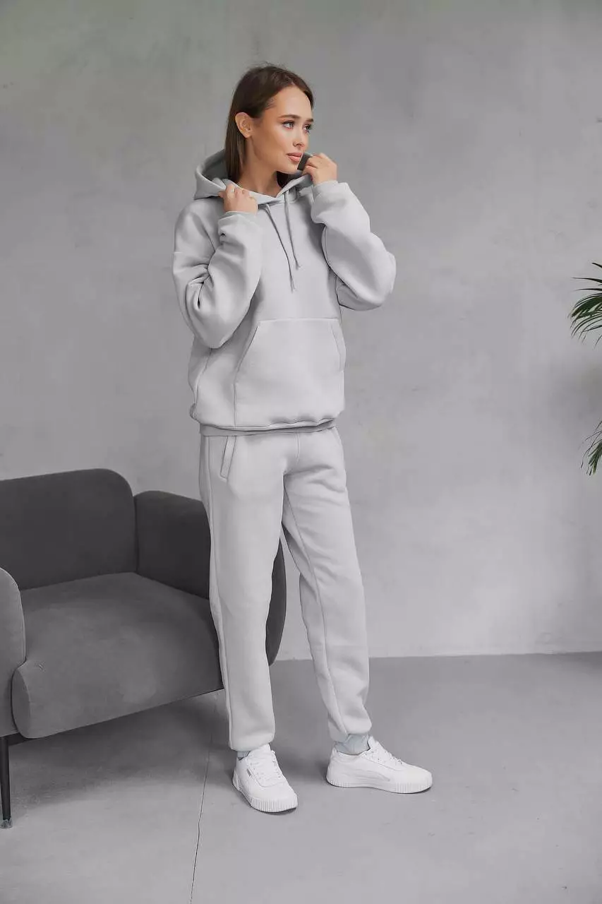Женский спортивный костюм с начёсом (худи + джоггеры) — тепло, уют