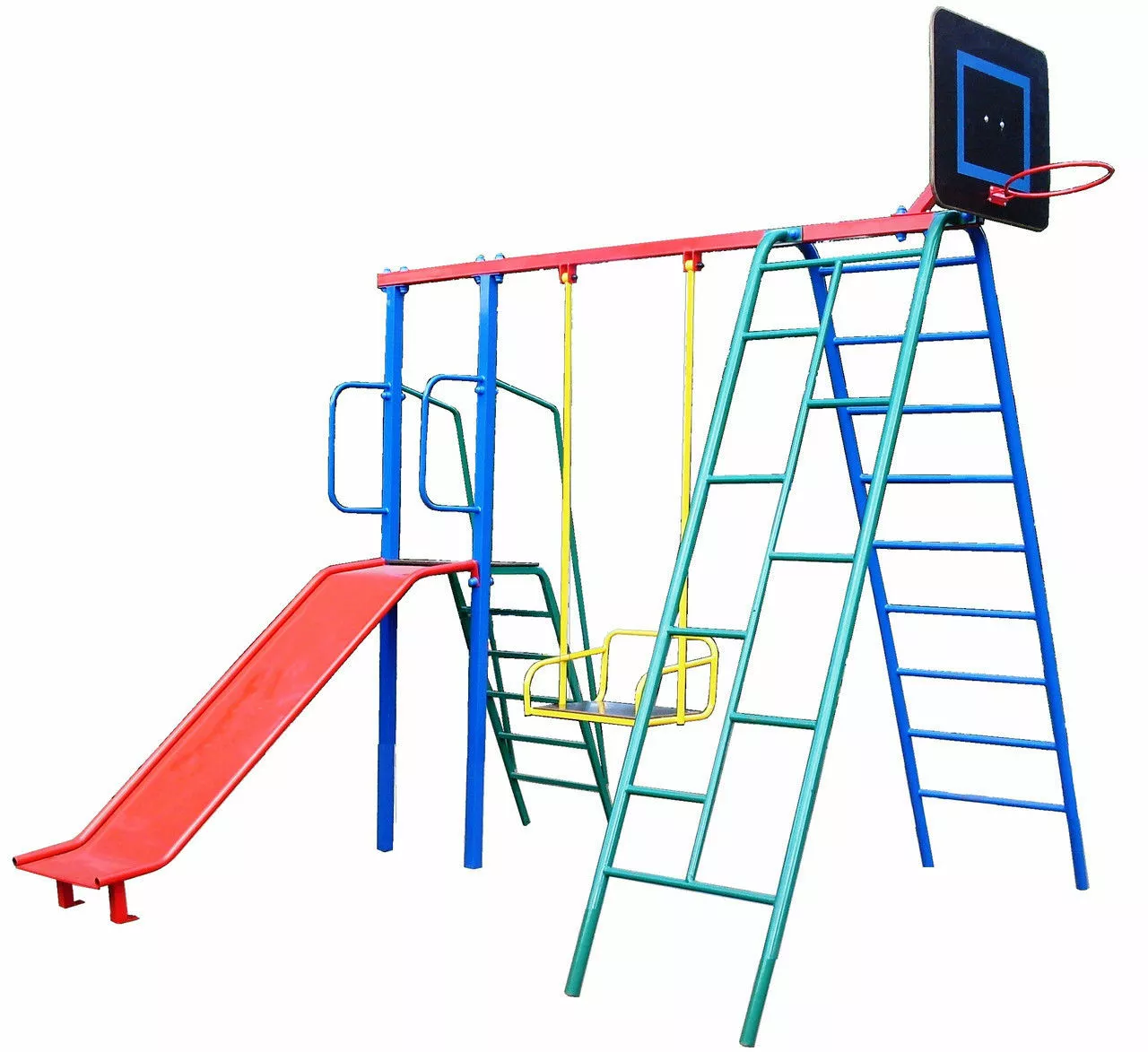 Материалы: перекладины и стойки из металла; горка и качели металла;
