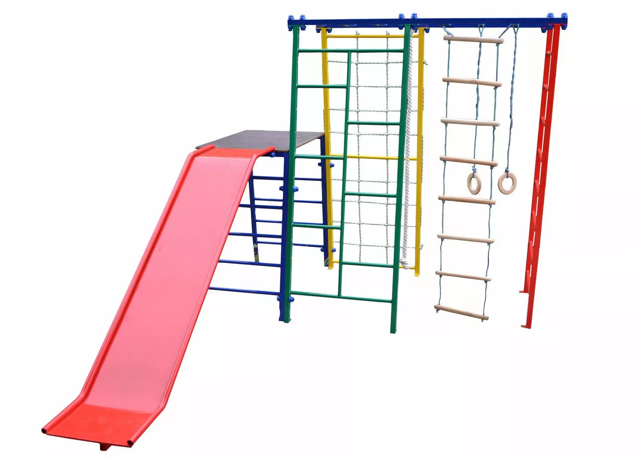 стенки, горки, гимнастических колец и гладиаторской сетки.