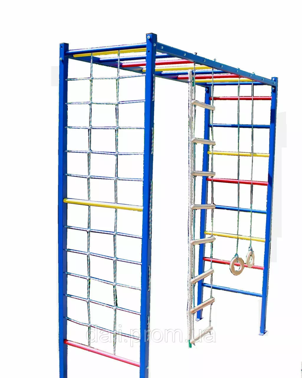 Семь предметов (шведская стенка, рукоход, гладиаторская сетка, канат, веревочная лестница, кольца, комплект крепежей для сборки)