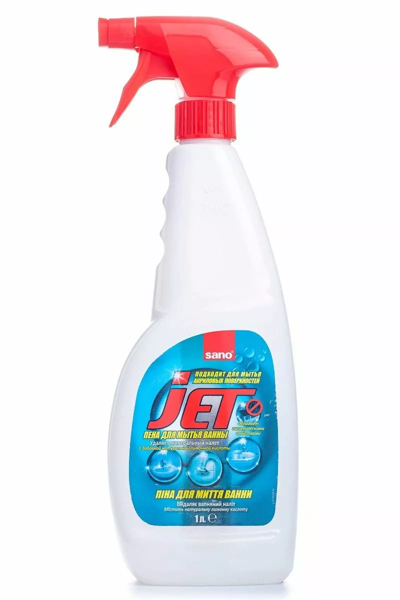 Средство Sano Jet Bathroom — эффективное средство для чистки ванн и сантехники. Чистит, дезинфицирует, придает блеск, удаляет известковый налет и остатки мыла, не оставляя царапин. Идеально подходит для мытья кранов, полотенцесушителей, керамической плитки, душевых кабин, ванн и джакузи с синтетическим или эмалевым покрытием, фарфоровых, хромированных, никелированных и пластиковых поверхностей, а также поверхностей из нержавеющей стали. Содержит натуральную лимонную кислоту для удаления налета. Отлично справляется с минеральным налетом, пятнами ржавчины, остатками мыла на стенках ванн и джакузи.