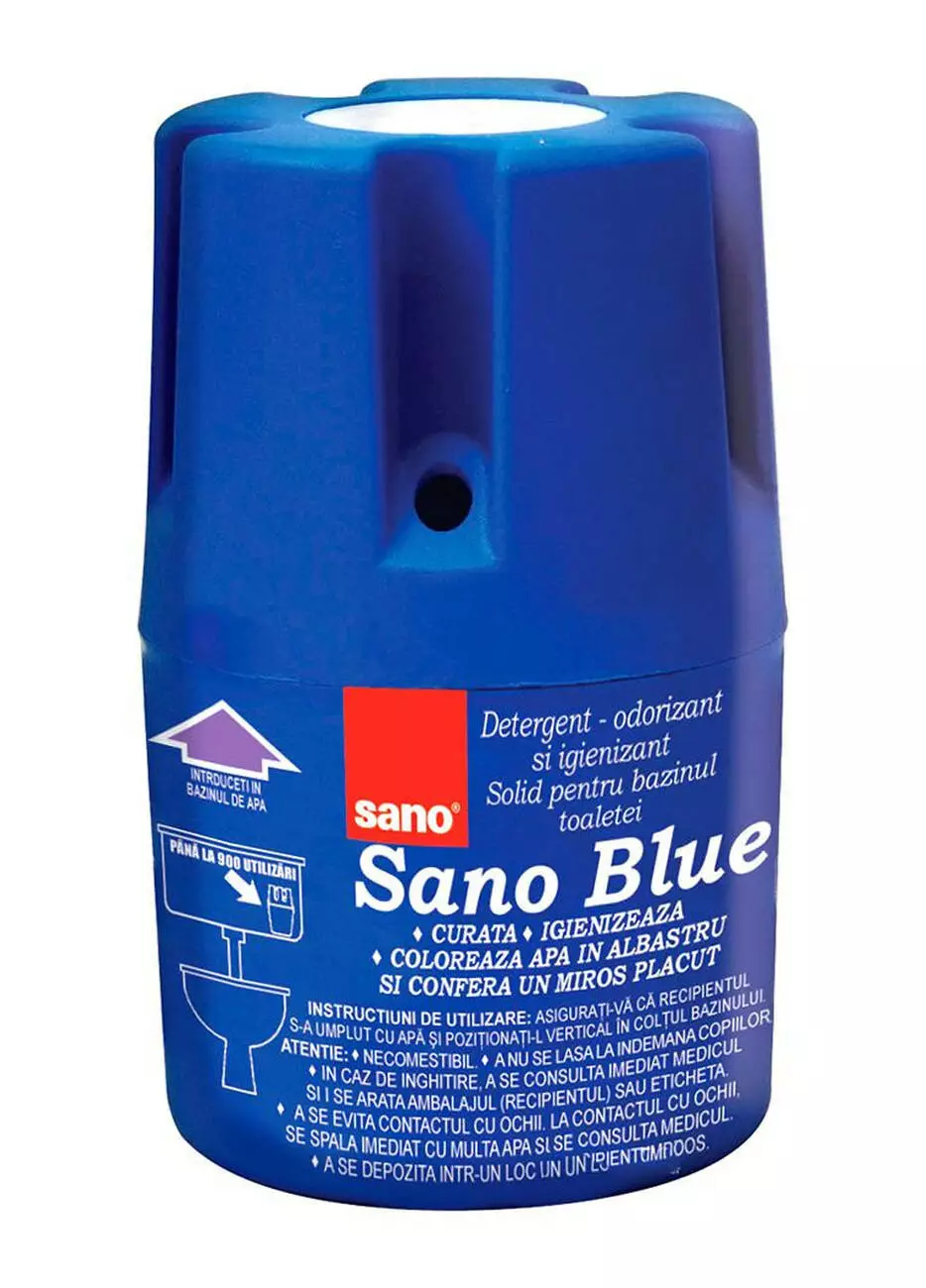 Блок с чистящим средством для сливного бачка Sano Blue предназначен для очищения, дезинфекции, ароматизации унитазов. Средство Sano Blue чистит, дезинфицирует, придает блеск, образует пену, оставляет приятный запах и окрашивает воду в красивый синий цвет. При регулярном использовании предотвращает образование известкового налета, неприятного запаха, уриновых отложений. Блок срабатывает при каждом сливе воды. Экономичен в применении. Одного блока хватает на 900 сливов!