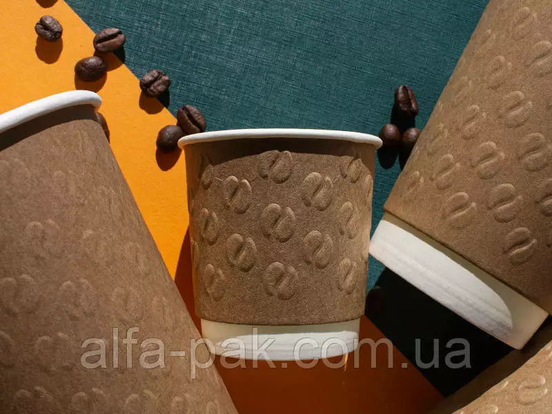 Стакан белый c тиснением "Кофейные зерна" крафт 270 мл - это яркий