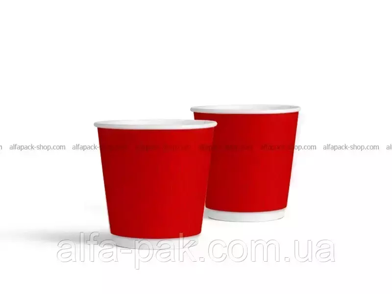 Стакан белый гофрированный красный 110 мл S-волна популярная тара
