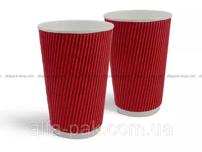 Стакан белый гофрированный красный 500 мл популярная тара для