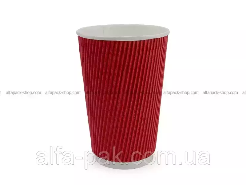 Стакан белый гофрированный красный, 500 мл