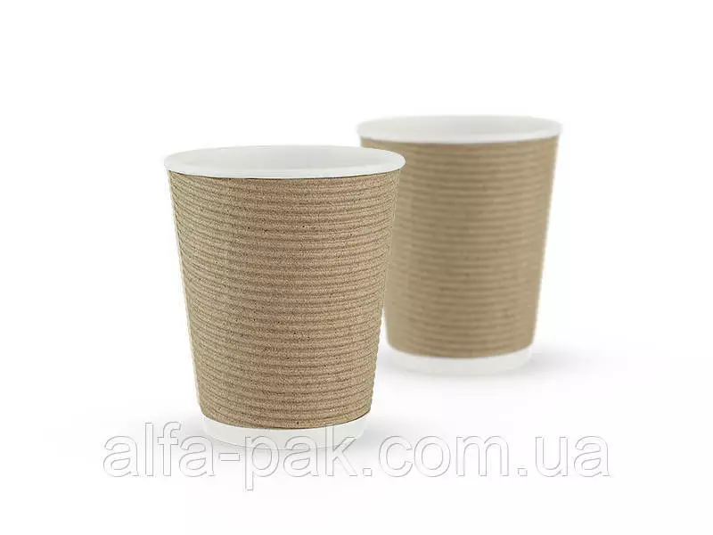 Стакан белый гофрированный бурый 270 мл F-волна горизонтальная