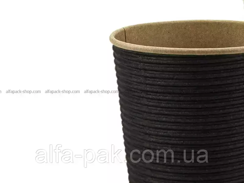 Стакан крафт гофрированный черный F-волна горизонтальная, 110