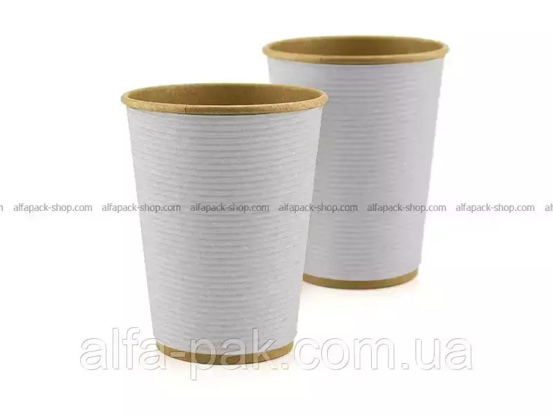 Стакан крафт гофрированный белый 440 мл F-волна горизонтальная