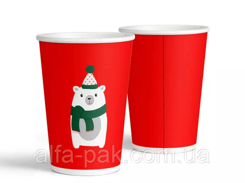 Стакан цветной мелованный "Новогодний мишка" 340 мл представитель