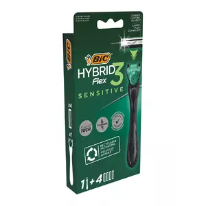 Станок для бритья мужской BIC Flex 3 Hibrid Sensitive с 4 сменными картриджами (3086123644977)