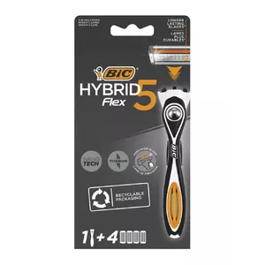 Бритва BIC Flex 5 Hybrid с пятью лезвиями, которые легко промываются и адаптируются к контурам лица, разработанная специально для ультратчательного бритья. Дополнительное лезвие деликатно удаляет щетину в труднодоступных местах. Головка бритвы, которая вращается под углом 40 °, четко следует контурам лица. Балансировочная сфера на ручке обеспечивает тщательно бритья. Удобная ручка с каучуковыми вставками, дает возможность уверенно держать бритву даже в мокрых руках. Удобная ручка с каучуковыми вставками, дает возможность уверенно держать бритву даже в мокрых руках. В набор входит 1 ручка и 4 сменные картриджи.