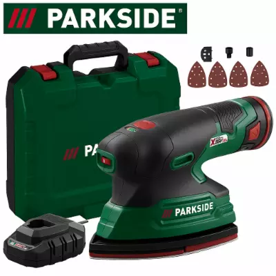 Стартовий набір акумуляторної шліфувальної машини Parkside PAMS 12A1 12V з акумулятором 2Ah та зарядним пристроєм