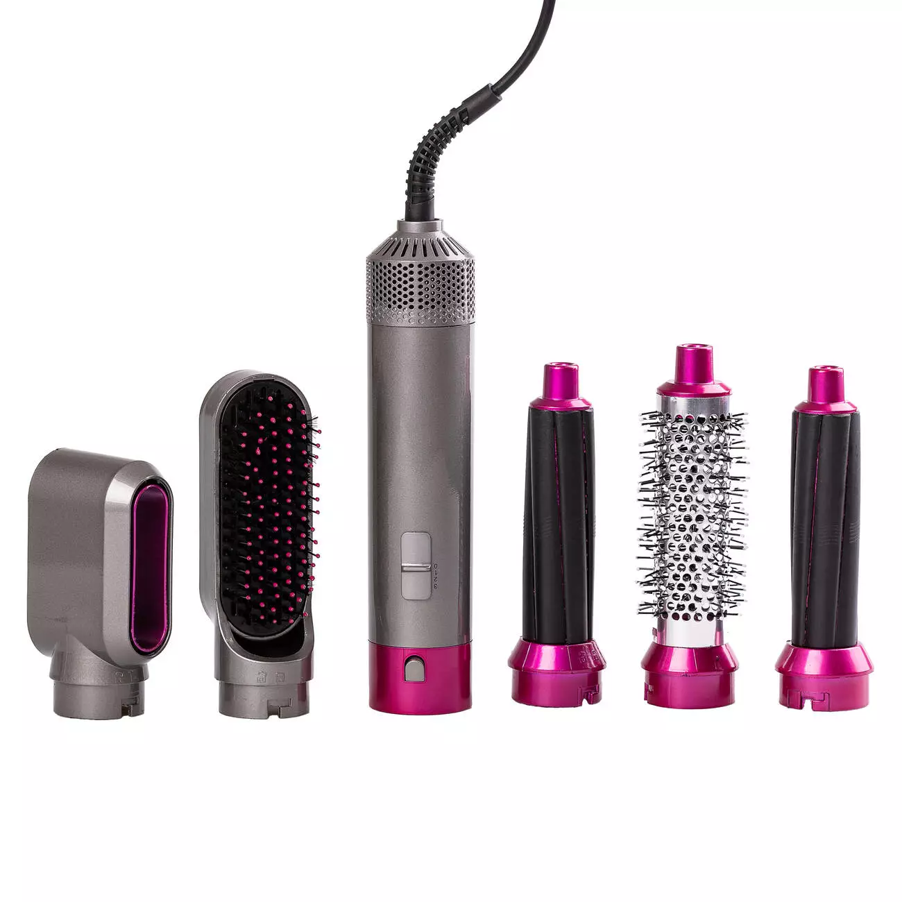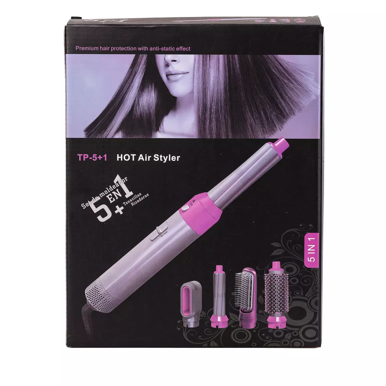 Повітряний стайлер для волосся Hot Air Styler 5 в 1 - пристрій, який допоможе створити справжнє салонне укладання вдома та подбати про здоров'я волосся. Стайлер підходить для роботи з різними типами волосся та підтримує рівномірну температуру, завдяки чому виключено перегрів та пошкодження пасм. Пристрій оснащений п'ятьма різними насадками, що виконують певні функції:
