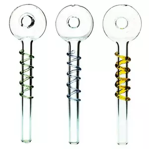 Стильная и прочная трубка из боросиликатного стекла с декоративной цветной спиралью. Продуманный дизайн с удобной чашей и витой отделкой обеспечивает приятное использование и лёгкий уход. Идеально подходит для концентратов и масел.