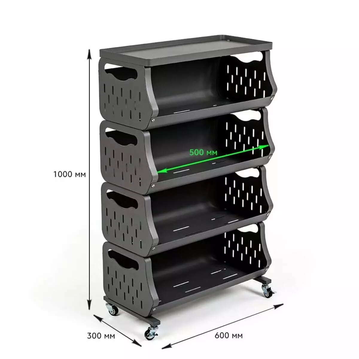 До вашої уваги стильне та функціональне рішення для організації простору у будь-якому приміщенні – універсальний стелаж для зберігання. Завдяки мобільній конструкції з колесами (які йдуть у комплекті), його легко переміщати туди, де він потрібен найбільше. Компактний дизайн із зручними полицями забезпечує ефективне зберігання речей з легким доступом до них. Перфоровані стінки полиць сприяють природній вентиляції, що ідеально підходить для зберігання продуктів або текстилю. Стелаж гармонійно доповнює домашній, офісний чи гаражний простір, створюючи порядок і комфорт.