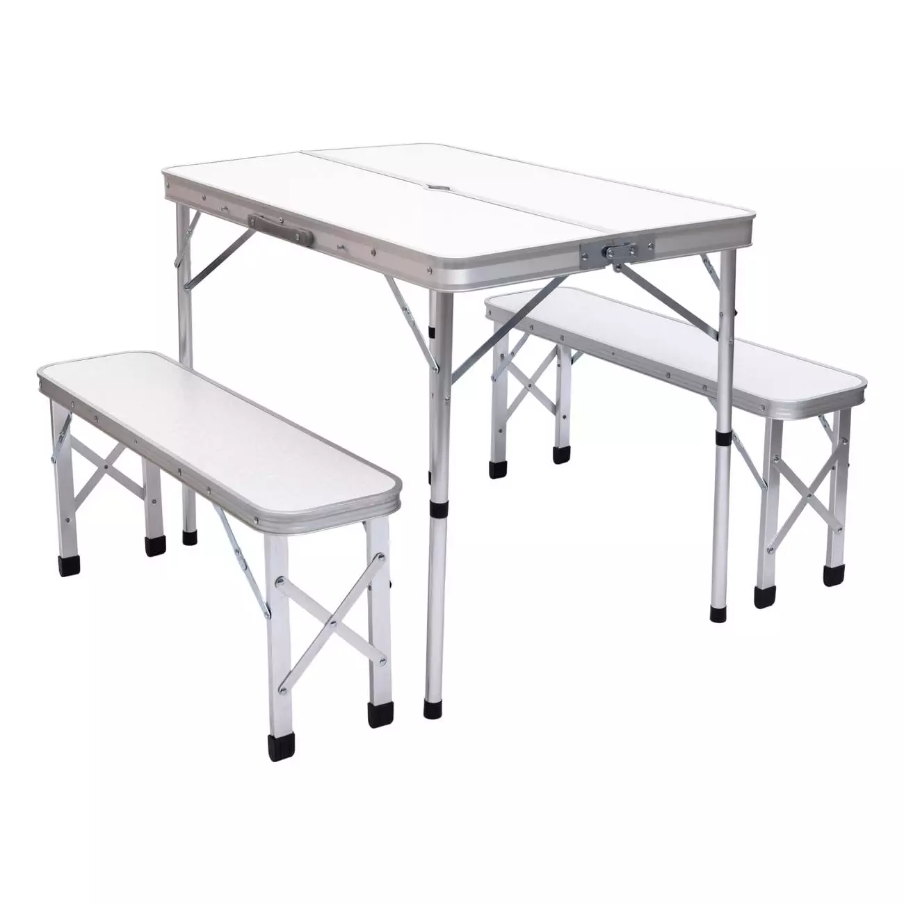 Стіл складаний і дві лавки для кемпінгу 90*60*39.5/70 см, білий