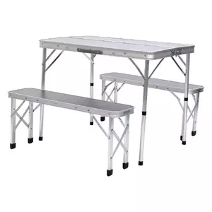 Універсальний кемпінговий набір, що складається зі столу та двох лавок, підходить для виїздів на природу, дачі чи тимчасового використання вдома. У складеному вигляді набір перетворюється на компактну валізу розмірами 90×10×30 см, яку зручно транспортувати та зберігати. Такий формат особливо зручний для подорожей автомобілем або зберігання у квартирі з обмеженим простором.