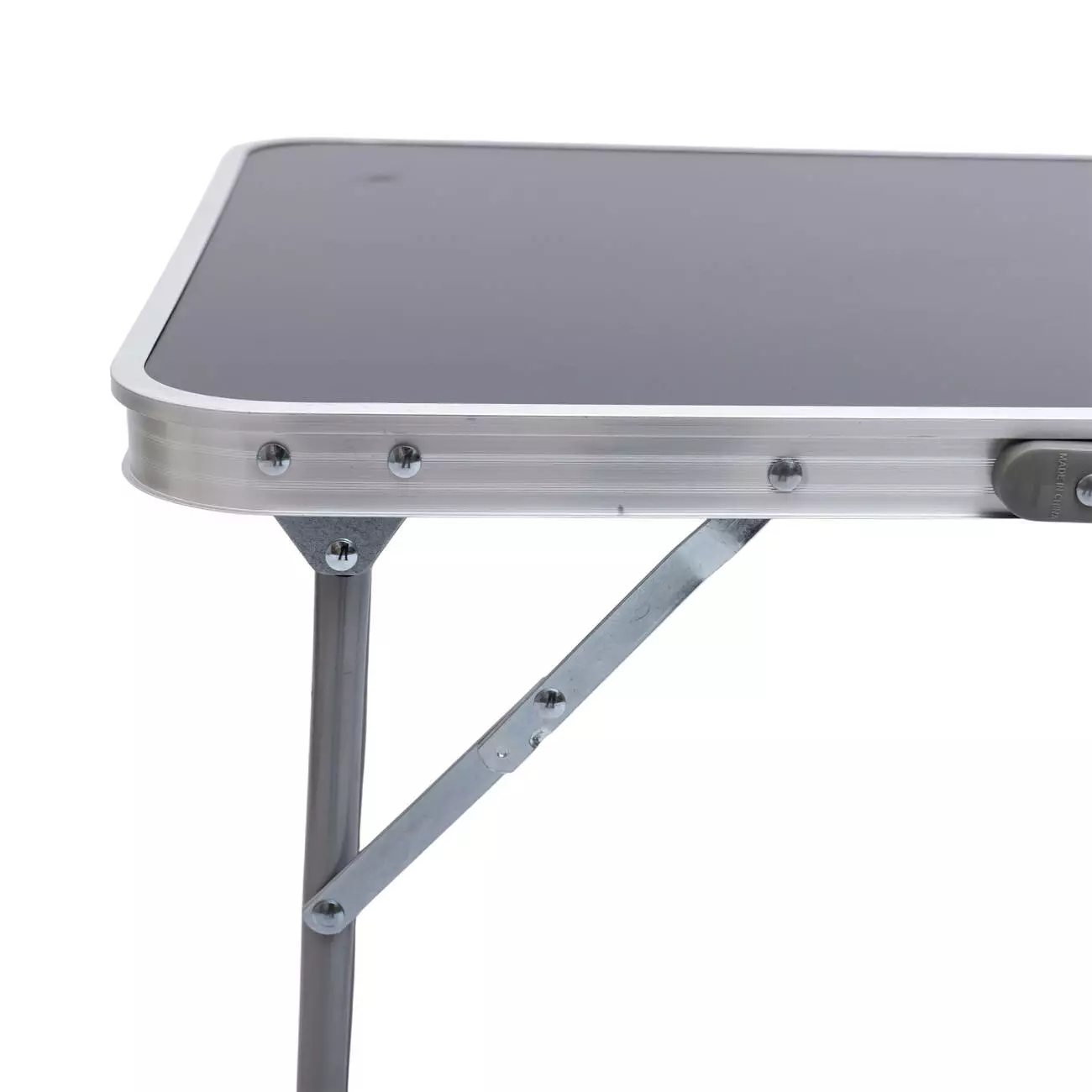 Каркас виготовлено з комбінації високоякісного алюмінієвого сплаву та залізної труби, що забезпечує хорошу стійкість і довговічність при експлуатації. Стільниця зроблена з плити МДФ — вона має рівну поверхню, стійку до навантажень і зручну для розміщення посуду, продуктів або іншого інвентарю. У розкладеному вигляді стіл має габарити 70×50×60 см, чого достатньо для комфортного використання.