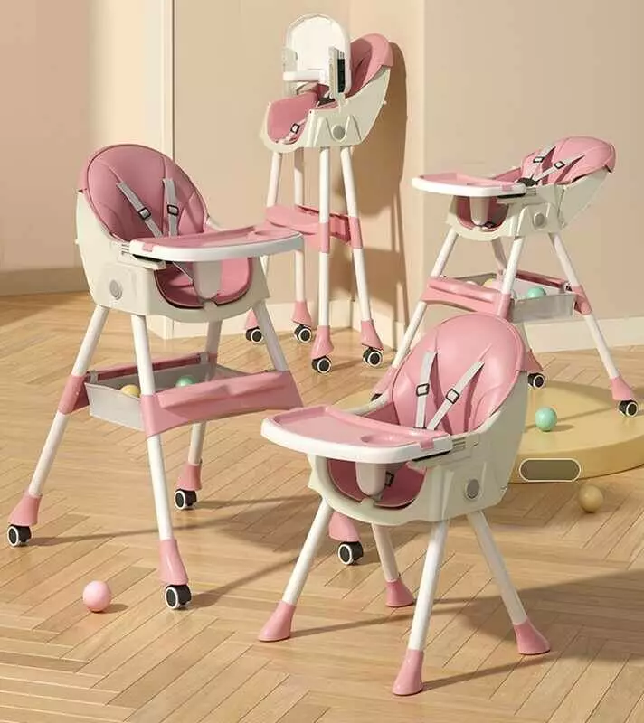 Стільчик для годування Toti FR- 30608 (1) сталева конструкція, матеріал тканини PU, знімний столик, опускна спинка, 4 колеса, в коробці