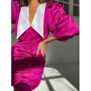 Стильна трендова шовкова міні сукня Kamilla з відкладним комірцем та V-подібним декольте колір фуксія