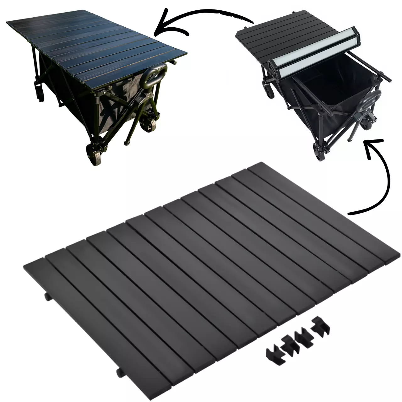 кемпінгову тележку і перетворює її на зручний мобільний стіл. У