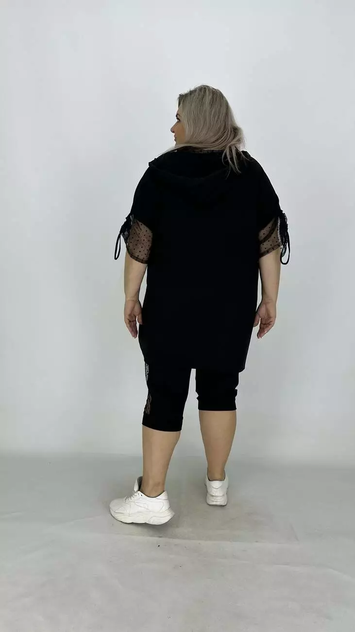 Капрі широкі зі вставками з боків сітки, низ на манжеті, пояс на