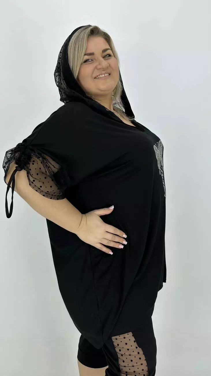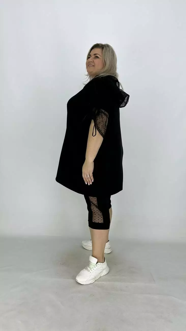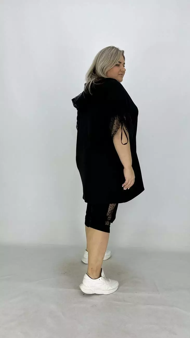 капюшоном із сітки, спущене плече, довжина регулюється шнурком,