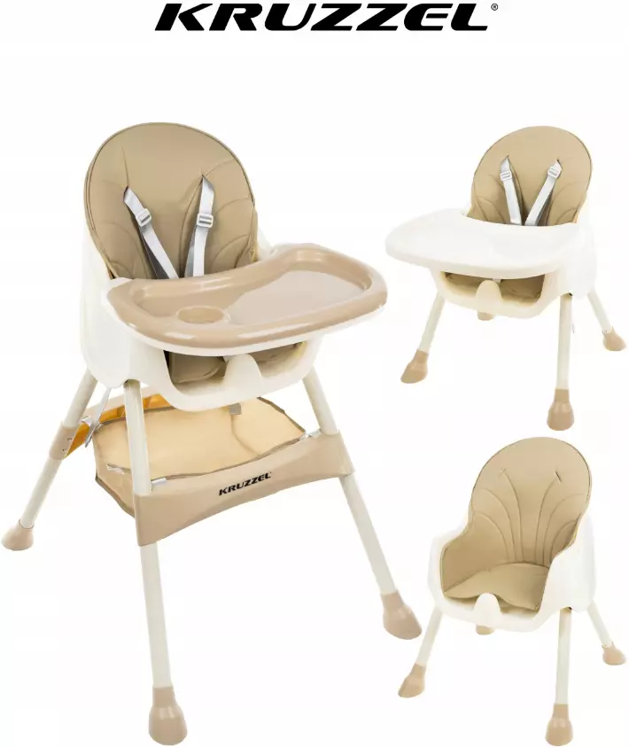 Кресло KRUZZEL 3-в-1 — идеальное решение для ежедневного кормления вашего ребенка. Кресло легкое, мягкое и удобное в использовании. Стул подходит детям от 6 месяцев. Имеет съемную обивку из практичной экокожи, которую легко чистить и удобно использовать. Столешница имеет 3 уровня регулировки расстояния и съемный поднос. Дополнительным преимуществом являются 4 нескользящие ножки с соответствующим расстоянием между ними, обеспечивающие устойчивость кресла. Дополнительный профилированный предохранительный элемент между ножками, препятствующий соскальзыванию ребенка с кресла.