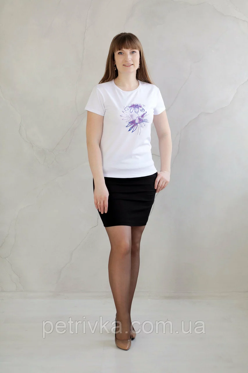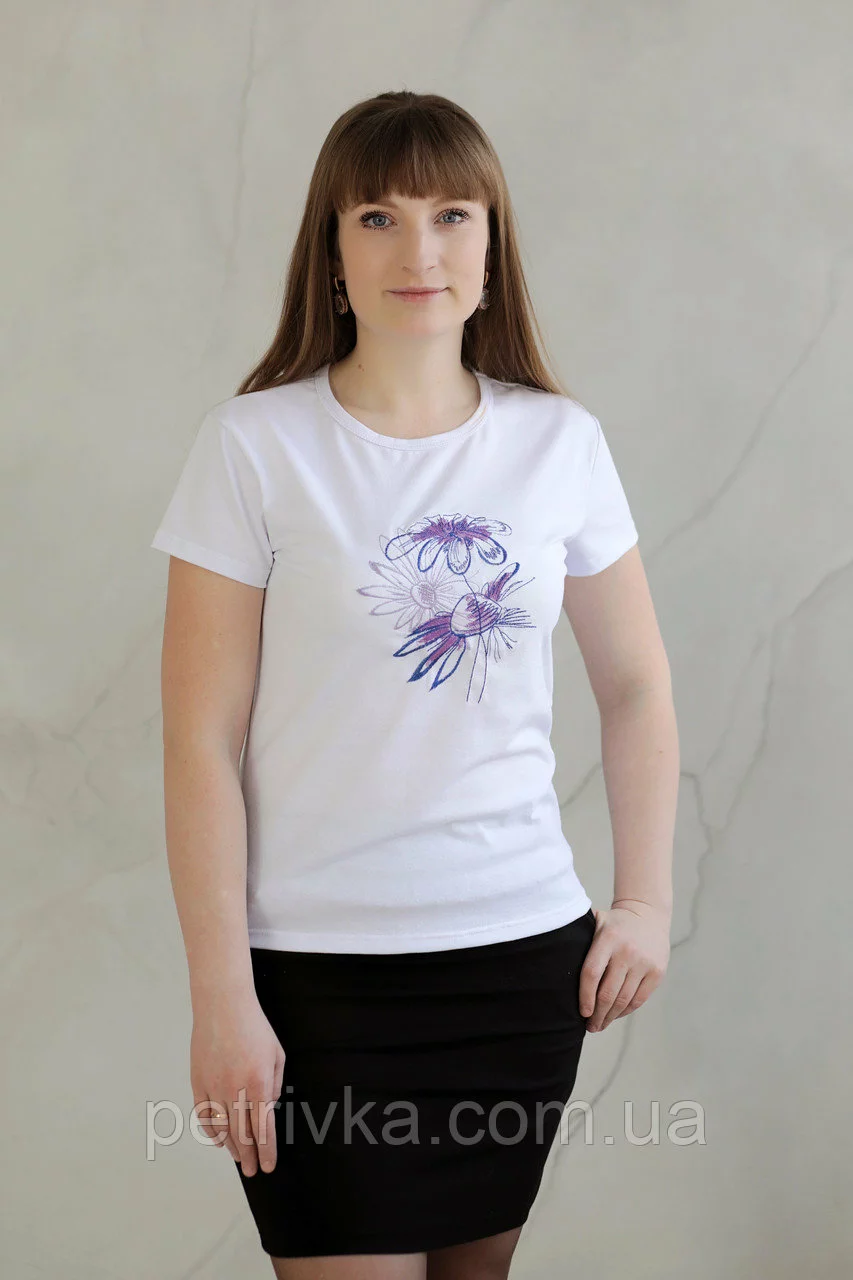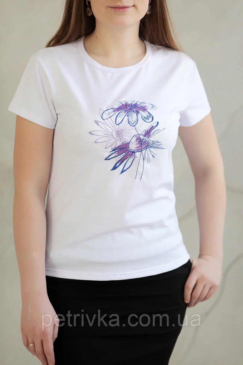 Жіноча біла футболка в стилі CASUAL, з вишитим принтом Ромашки