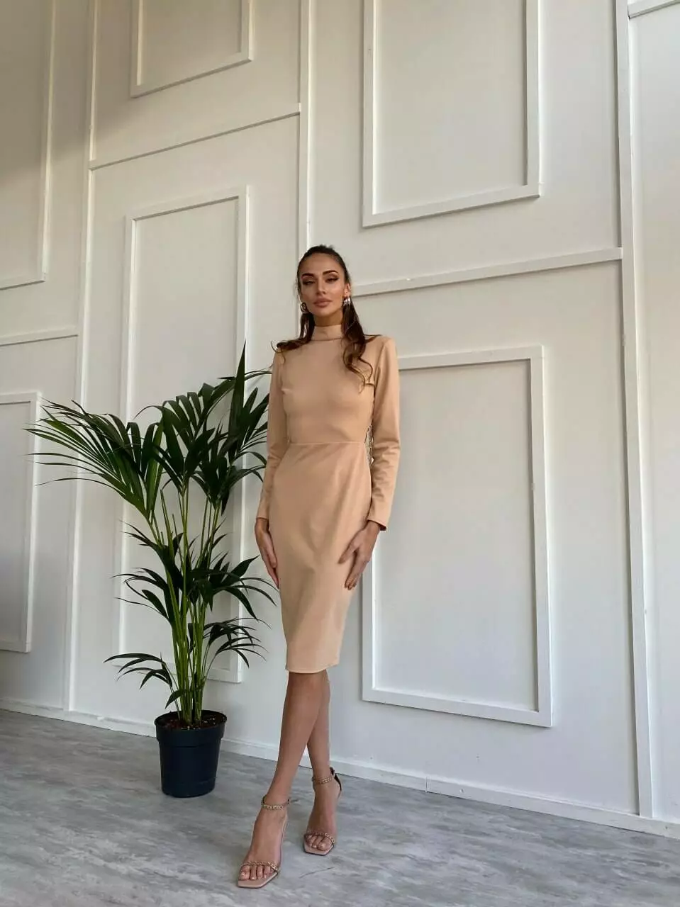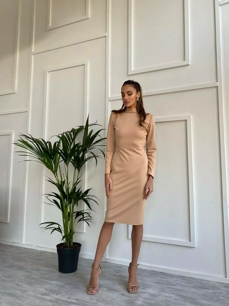 Жіноча сукня гольф міді з щільного трикотажу lux, з об'ємними підплічниками та застібається сукня на ґудзики на горлі ззаду і потайною блискавкою
