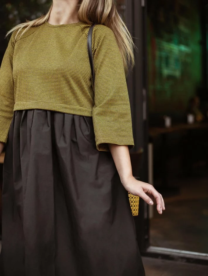 Сукня класичного стилю комбінована з двох тканин. У вільній