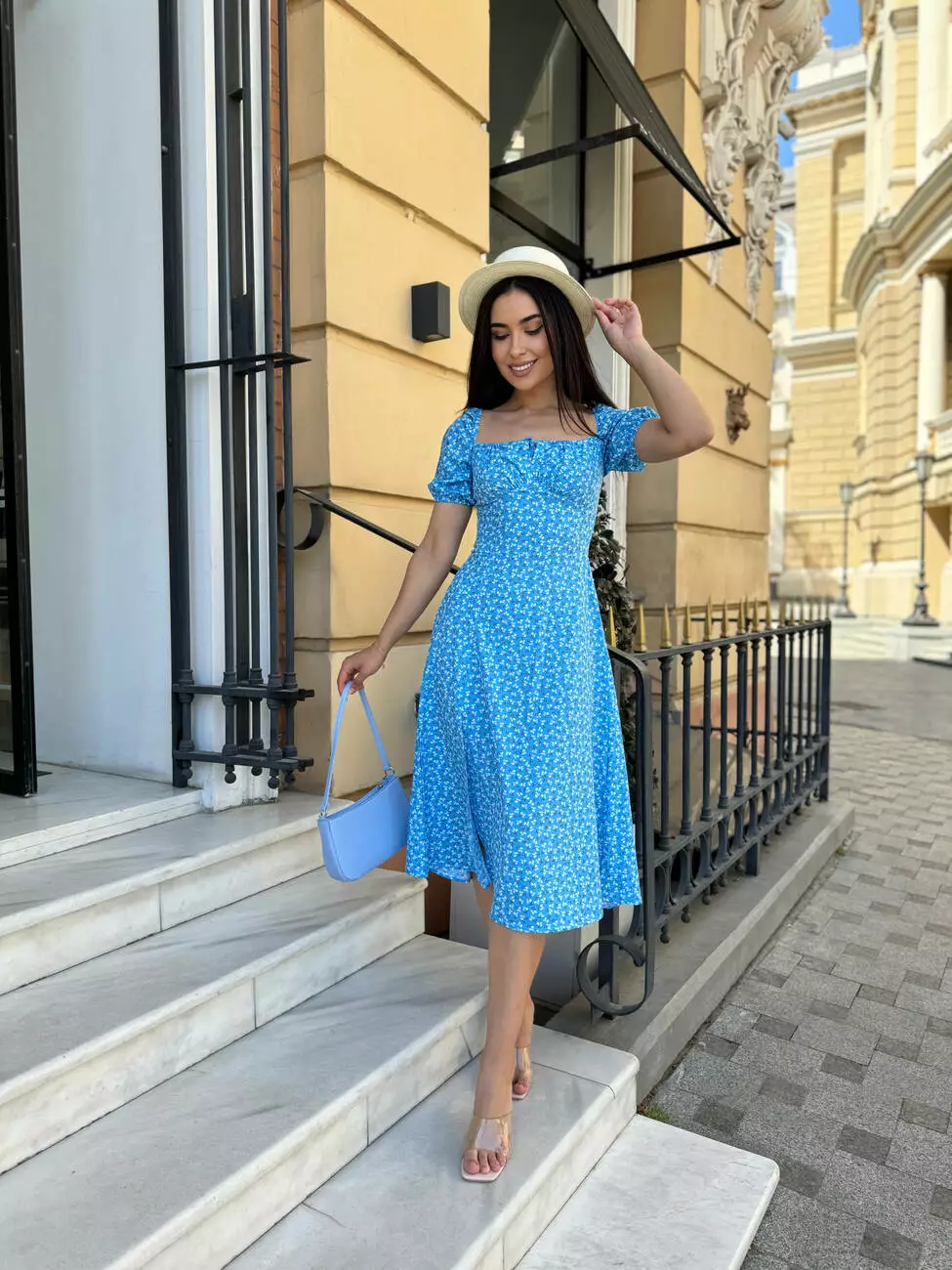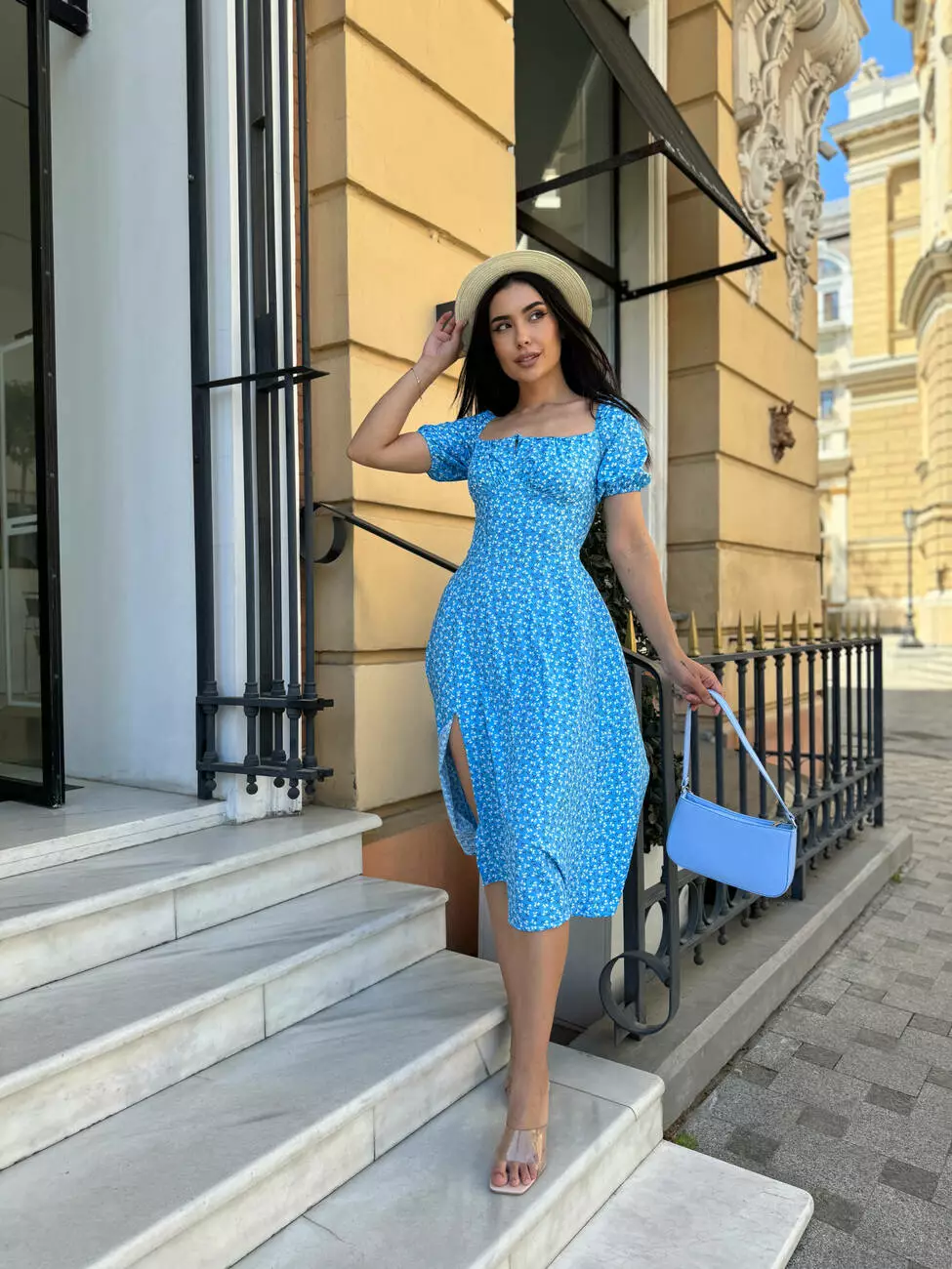 Сукня літня блакитного кольору з розрізом