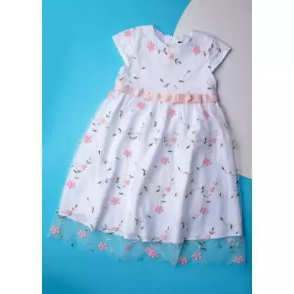 Деталі моделі: Основний колір сукні білий. Кругла