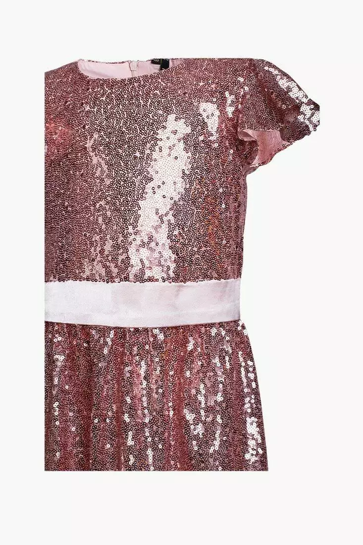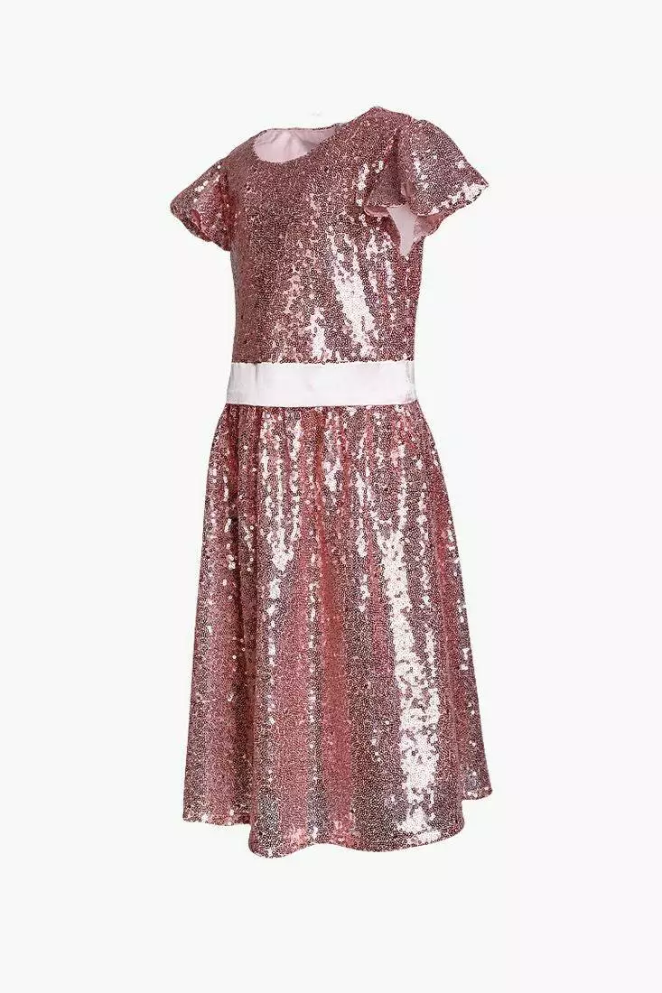 Пудрове плаття з паєтками і атласним поясом. Ніяких зайвих