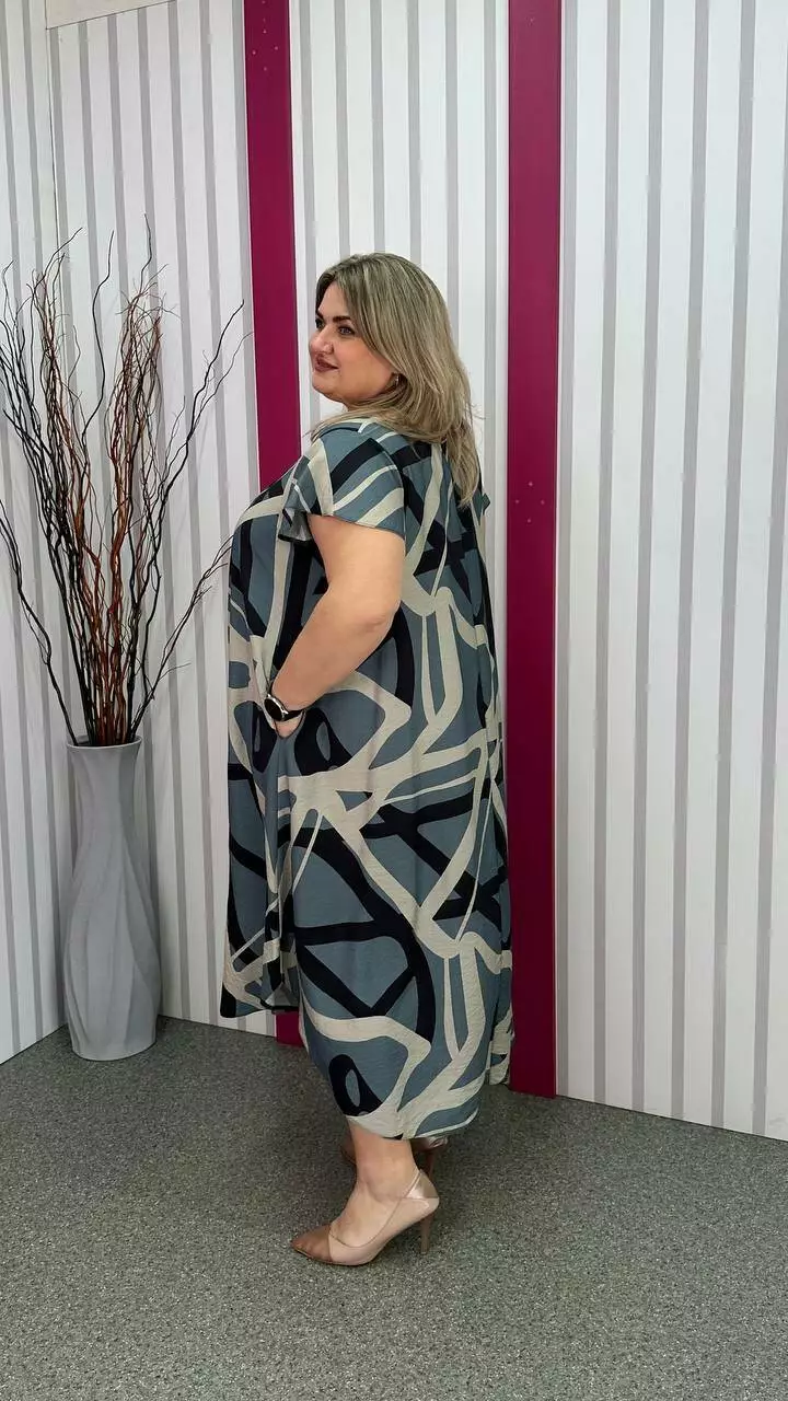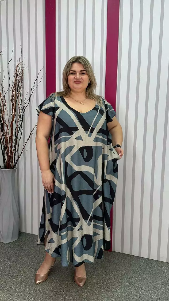 Глибокий виріз горловини, кишені в бічних швах, закруглені