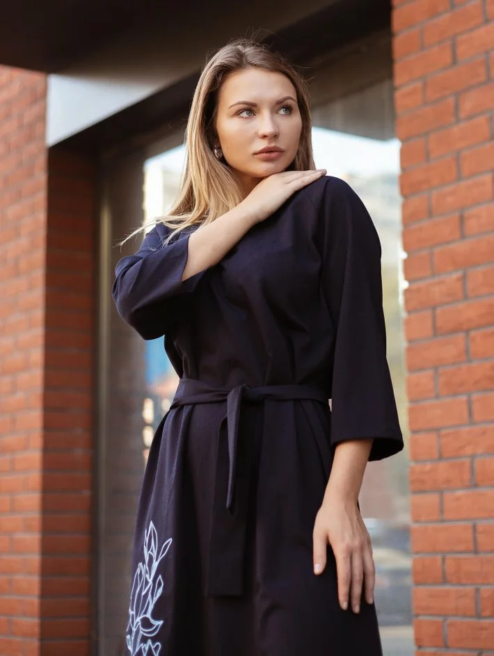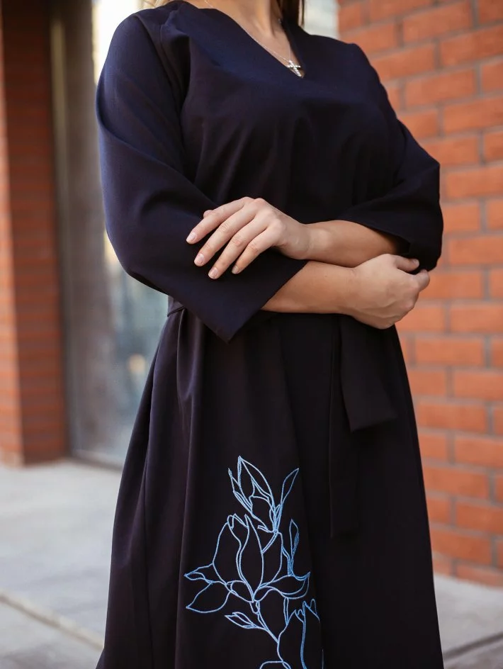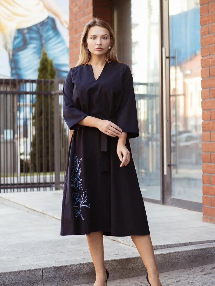 Шикарна сукня довжини міді з вільним рукавом 3/4 та акуратною
